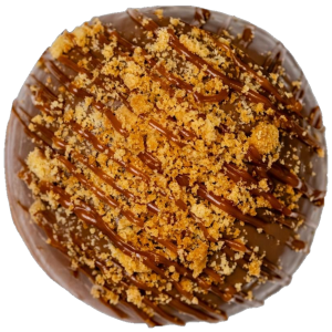 $12.00A SOFT BRIOCHE DONUT FILLED WITH CARAMEL, TOPPED WITH MILK CHOCOLATE, SHORTBREAD AND DULCHE DE LECHE.