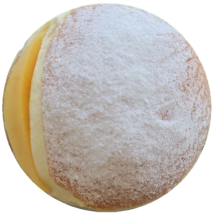 BRIOCHE DONUT FILLED WITH SILKY SMOOTH VANILLA BEAN CUSTARD, TOPPED WITH BURNT SUGAR TOFFEE.