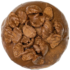 $8.00BRIOCHE DONUT FILLED WITH A MINT FUDGE, TOPPED WITH DARK CHOCOLATE GLAZE AND CRUSHED UP MINT SLICE BISCUITS.