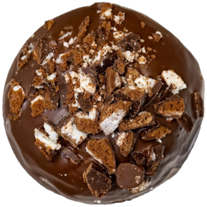 $8.00BRIOCHE DONUT FILLED WITH A MINT FUDGE, TOPPED WITH DARK CHOCOLATE GLAZE AND CRUSHED UP MINT SLICE BISCUITS.